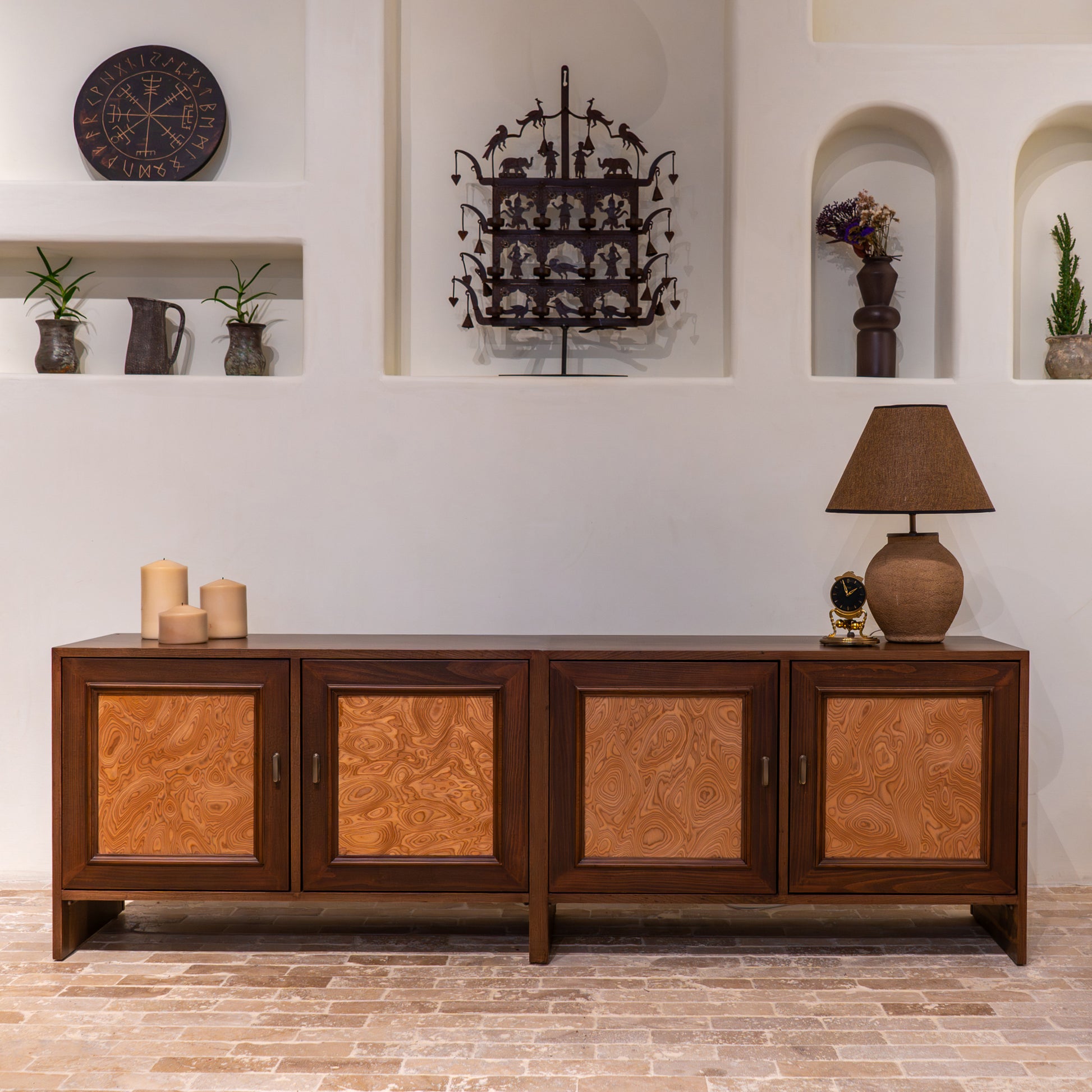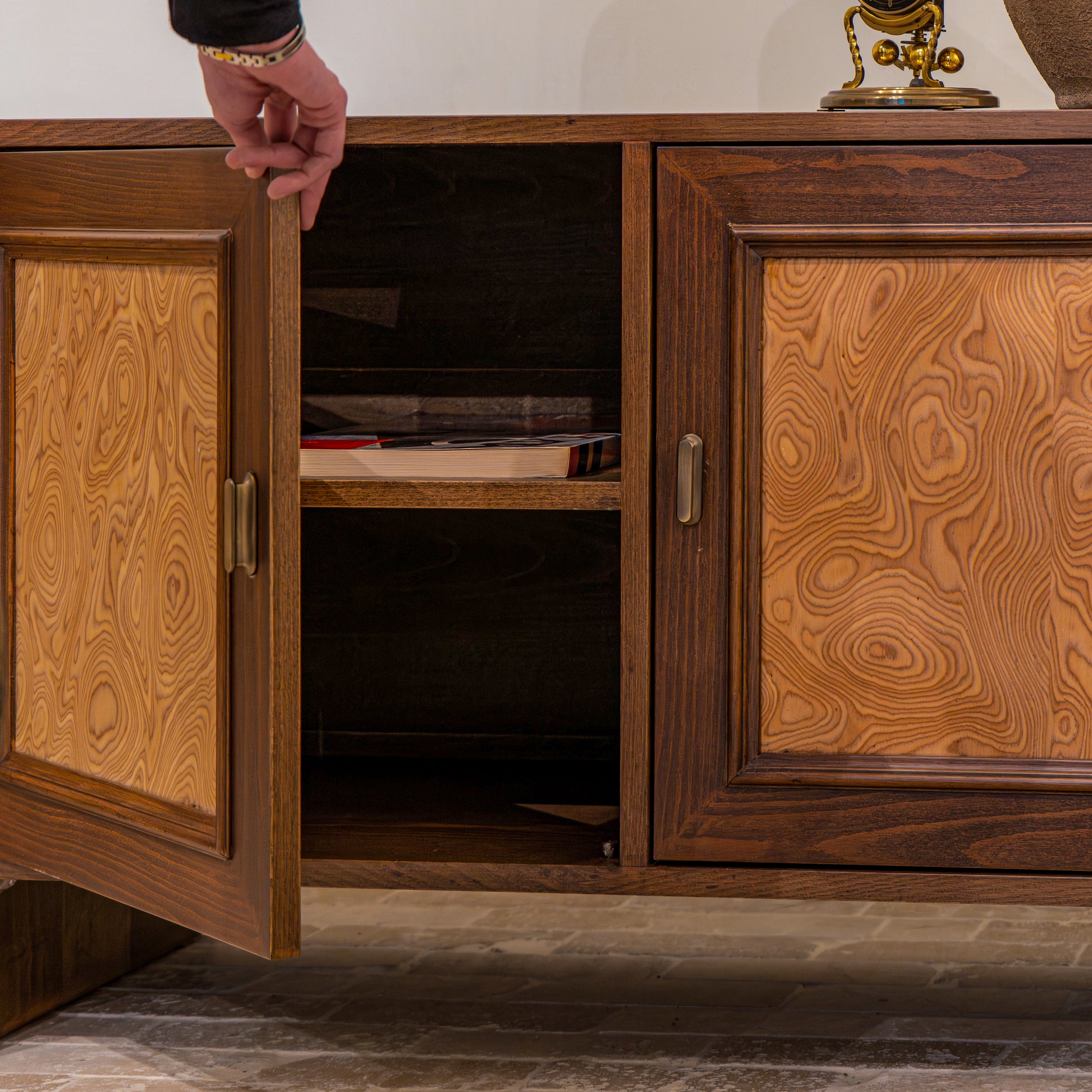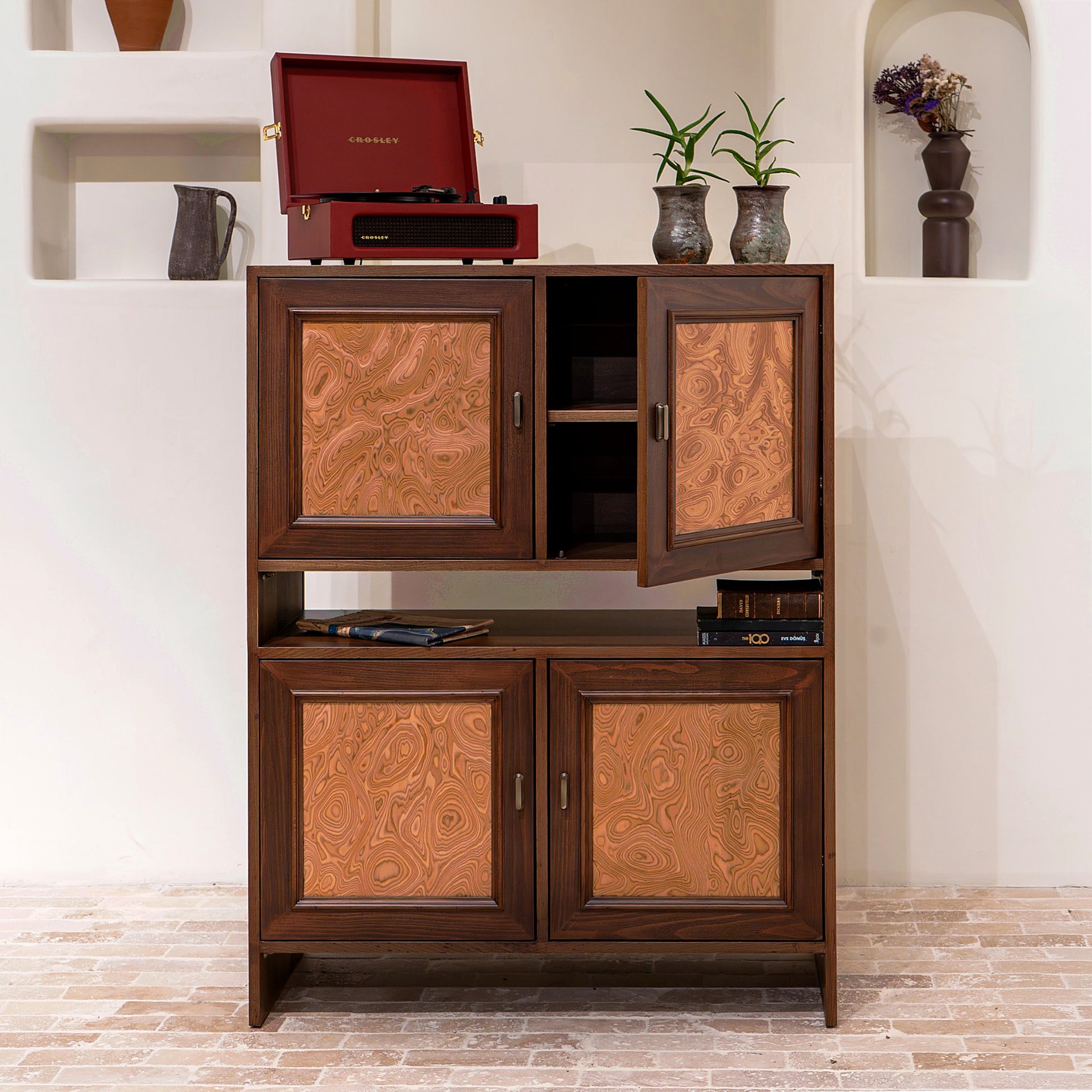 Echo, modüler kurgusu sayesinde mekana uyum sağlayan çok yönlü bir tasarımdır. İki ayrı modül olarak üretilen sistem; yan yana konumlandığında dengeli ve güçlü bir TV sehpası, üst üste kullanıldığında ise karakterli bir büfe formuna dönüşür.