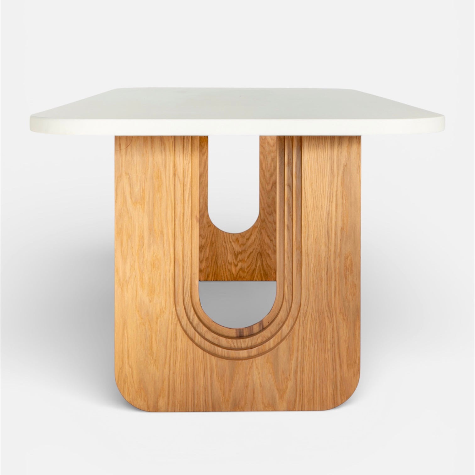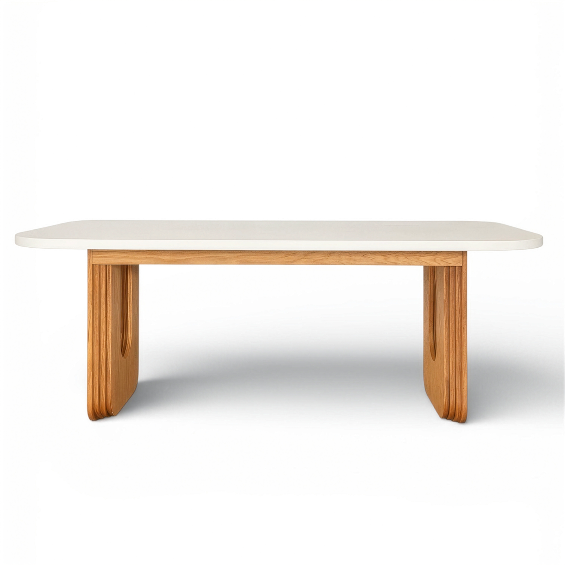Doğal meşe kaplama ayakları ve sade formu ile zarif bir duruş sunan Mari Yemek Masası, zamansız tasarımıyla farklı mekanlara uyum sağlar. Yumuşatılmış köşelere sahip lake üst tablası estetik bir görünüm sunarken, meşe kaplamanın sıcak dokusu ile dengeli bir kontrast oluşturur.